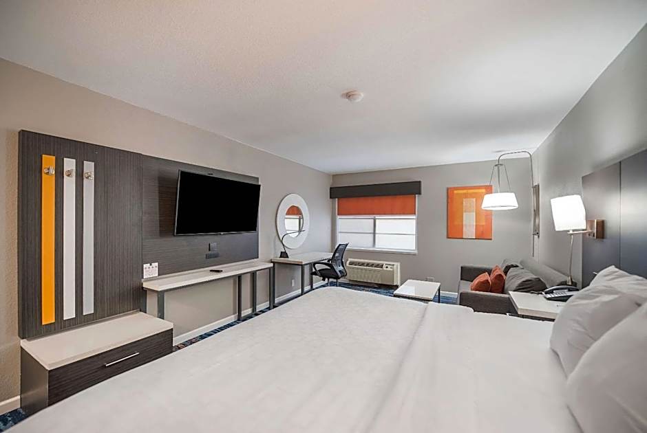 Indulge in a spacious 312 sqft, smoke-free King Room. Unwind in the comfort of a king size bed and enjoy modern amenities such as a microwave, flat-screen TV, and free toiletries.